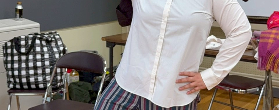16日の稽古では、その私のシーンからスタートしました。お芝居の稽古ではシーンごとに区切って繰り返し修正していくのですが、この日は演出がストップをかけずどんどん次のシーンへと進んでいきました。油断してると自分の出番が…「ここまで繋がったね」と演出に言われると、ああ、いよいよ稽古も終盤だな、と実感しますね。