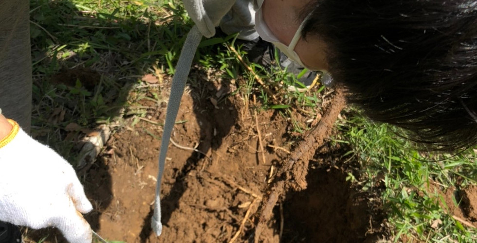 土にはった根っこがところどころにあって中々簡単に土を掘らせてくれません。掘れば掘るほど根っこにあたりました(苦笑)